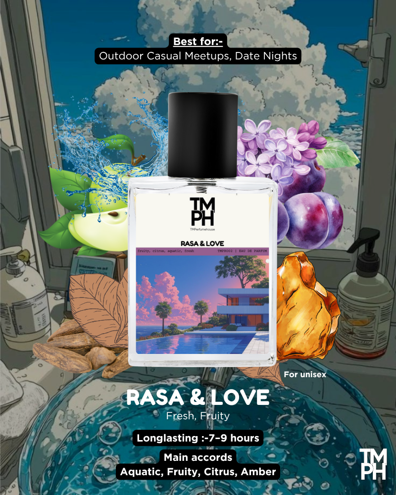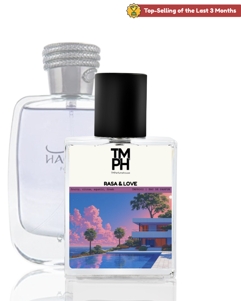 Rasa&Love captures the essence of freshness and sensuality with citrus, apple, and aquatic notes blended seamlessly with warm cardamom and cinnamon. A base of musk, and woods ensures lasting depth. With 95% of the original DNA and superior performance, it’s vibrant, versatile, and irresistibly captivating.