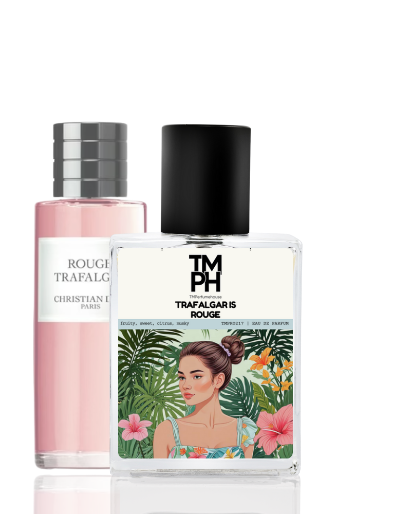 trafalgar is rouge is a lively scent inspired by bursts of joy and energy. It opens with tart raspberry, strawberry, and mandarin for a fruity brightness, unfolding into a heart of blackcurrant and grapefruit. The base of musk and patchouli adds depth, creating a fragrance that is vibrant, elegant, and irresistibly modern.