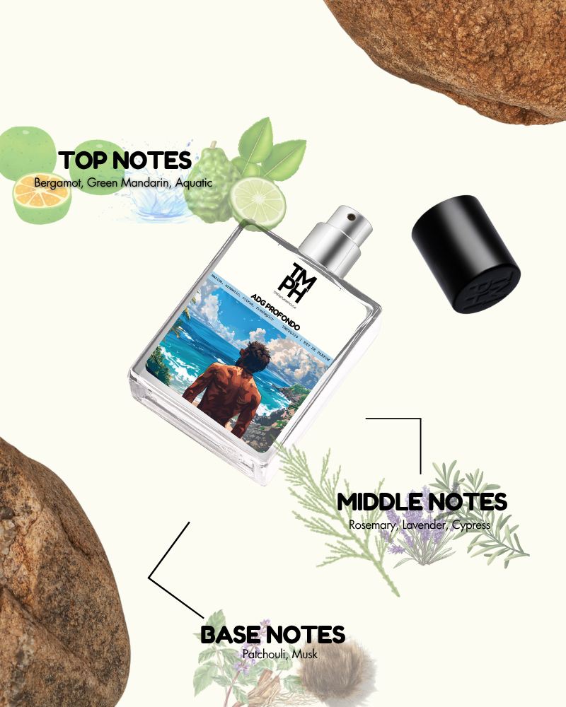 ADG Profondo perfume starts with the freshness of green mandarin, bergamot, and marine accords. Additionally, this opening gives a vibrant and uplifting experience for any occasion.