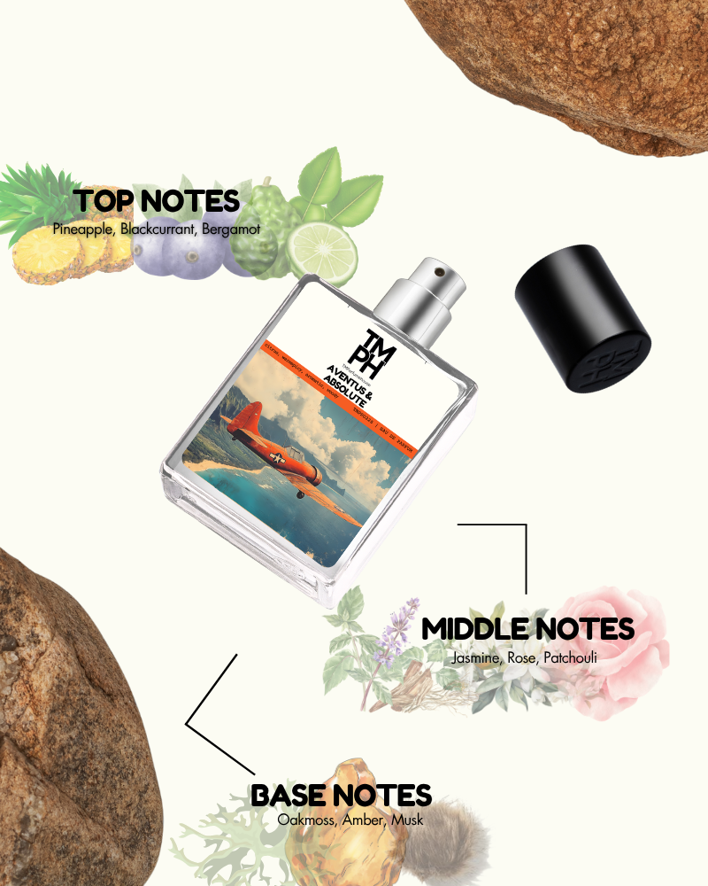 aventus & absolute is a bold scent that celebrates strength and success. It opens with juicy pineapple, blackcurrant, and bergamot, unfolding into a heart of patchouli, rose, and jasmine for refined elegance. The base of oakmoss, and smoky birch lingers with intensity, creating a fragrance that is commanding, timeless, and unforgettable.
