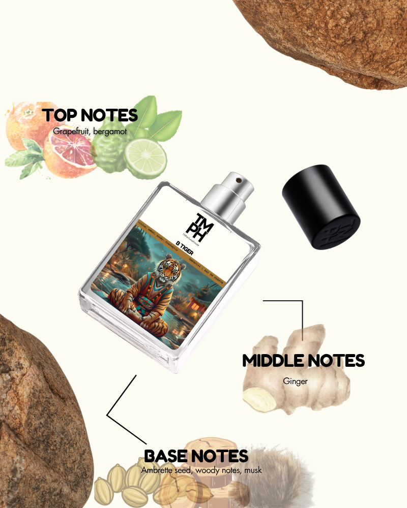 B Tiger opens with a bold fusion of spicy cardamom, fresh grapefruit, and creamy woods, setting a tone of modern power and sophistication. The heart unfolds with warm amber and smoky tonka, balanced by hints of vanilla and patchouli. As it dries down, deep woody accords and soft musk create an addictive trail that’s both fierce and refined. B Tiger embodies strength, luxury, and unapologetic confidence.