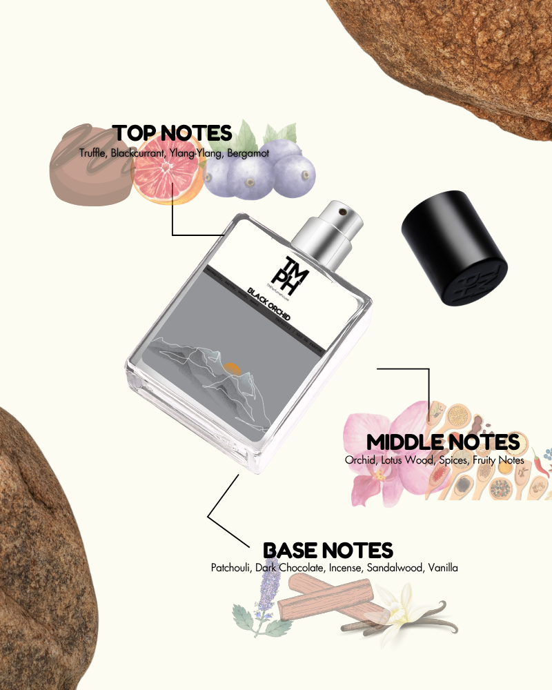 Black orchid opens with black truffle and ylang-ylang, leading into a heart of orchid, jasmine, and lotus. The base of patchouli, incense, and vanilla adds depth. Sensual and dramatic, it’s a statement fragrance of luxury and allure.