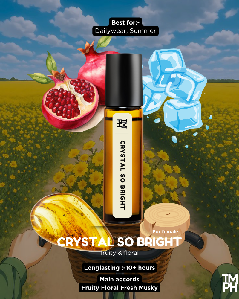 A fresh, sparkling, and beautifully feminine fragrance. Bright Crystal AT opens with juicy pomegranate and cool freshness, blending into soft peony florals and a clean musky base. It gives a bright, youthful, and elegant vibe — perfect for women who love light, refreshing scents.