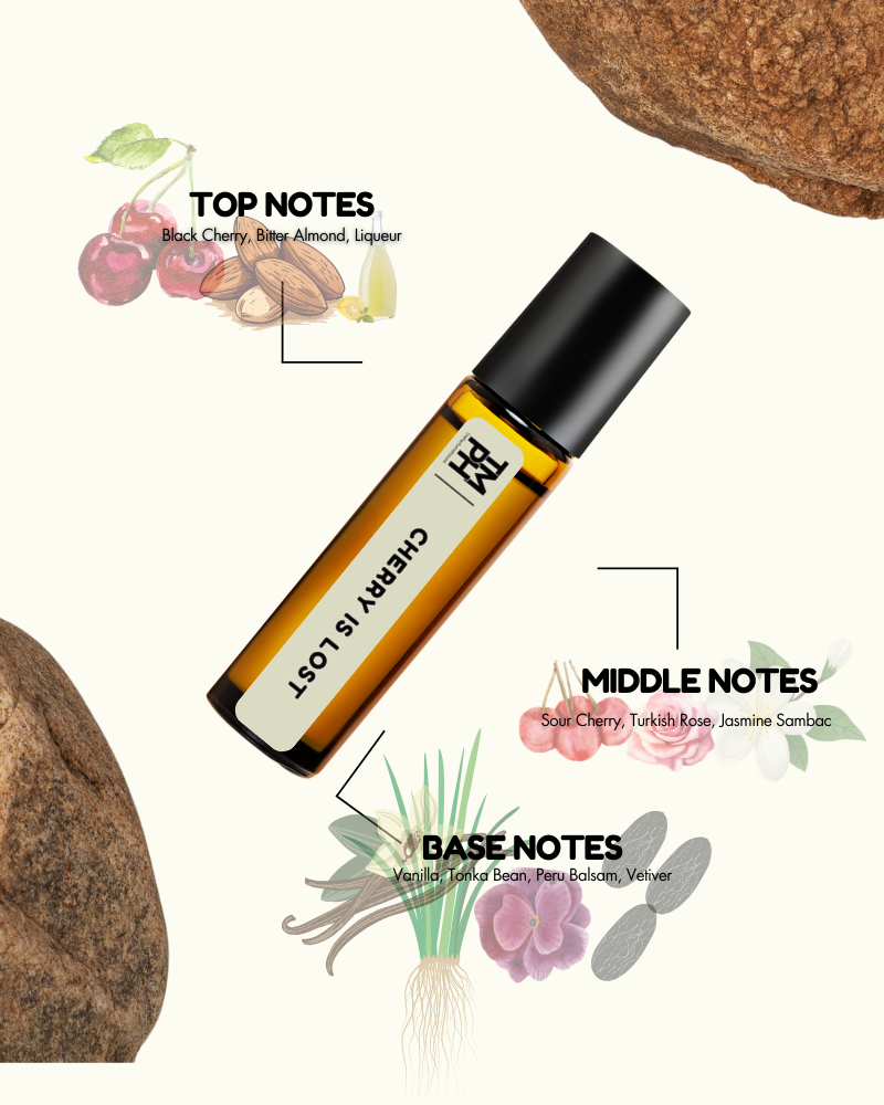 CHERRY IS LOST AT is a sweet, juicy and slightly sensual cherry-based attar. It blends ripe cherries with soft florals and a warm woody base, giving a playful yet elegant vibe. Perfect for people who love fruity–gourmand scents with a modern twist.