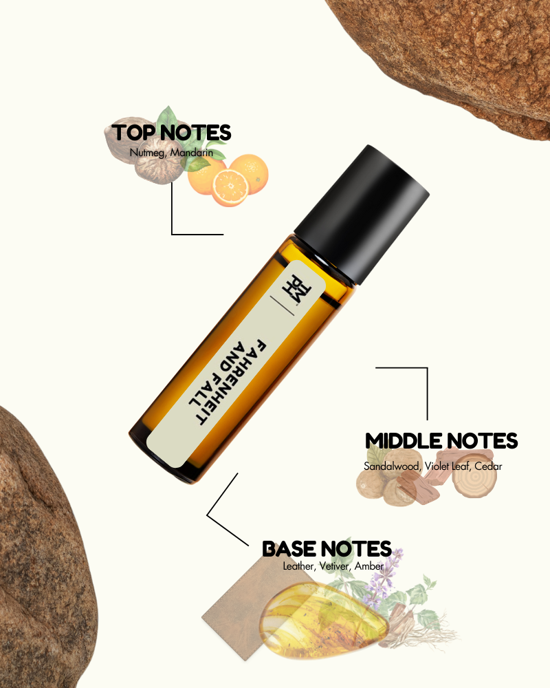 FAHRENHEIT & Fall AT by TMPerfumehouse is a bold, warm, and unmistakably masculine fragrance. It opens with a unique blend of Lavender, Hawthorn, Nutmeg Flower, Camomile, Bergamot, and Lemon—creating a fresh yet aromatic start. The heart reveals strong Violet Leaf, Honeysuckle, Cedar, and Sandalwood, giving the fragrance its iconic leathery woods signature.
