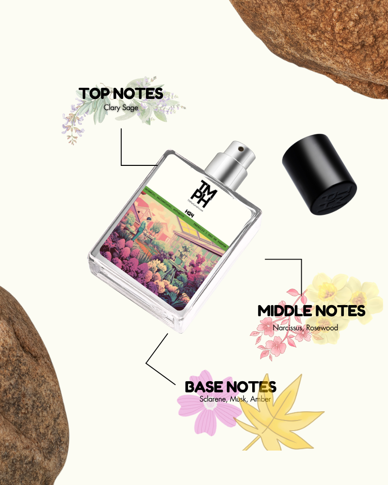 H24 blends clary sage, narcissus, and rosewood with metallic sclarene. Modern and vibrant, it embodies innovation and masculine energy with a fresh, airy trail.