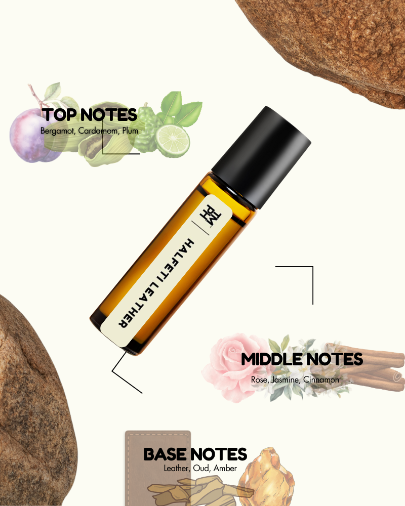 A bold and intoxicating leather fragrance crafted for those who carry power effortlessly. It begins with a dark blend of spiced citrus and dried fruits, creating a warm, mysterious opening that immediately captures attention. The heart unfolds into smoky leather wrapped with rose, saffron and patchouli, delivering a deep Middle-Eastern richness with a seductive edge. As it settles, oud, amber and woody resins create a luxurious, long-lasting trail that feels both sensual and commanding.