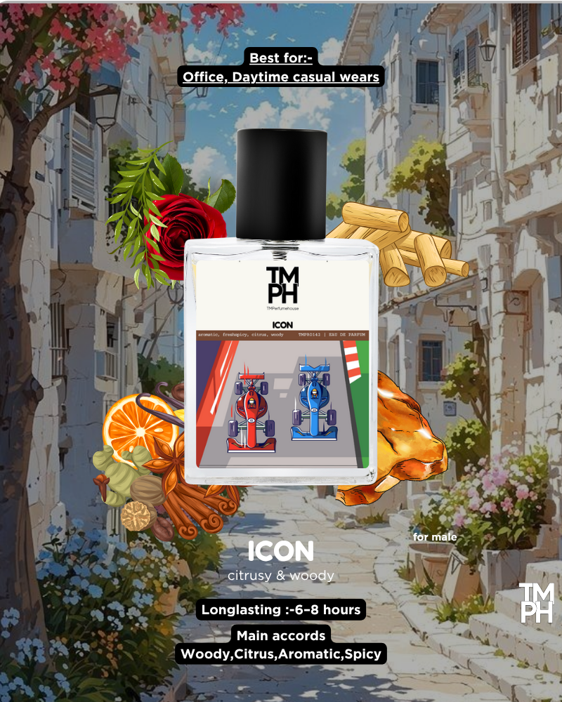 icon is a refined, modern fragrance that blends citrus freshness, aromatic spices, and warm woods for timeless masculine elegance.