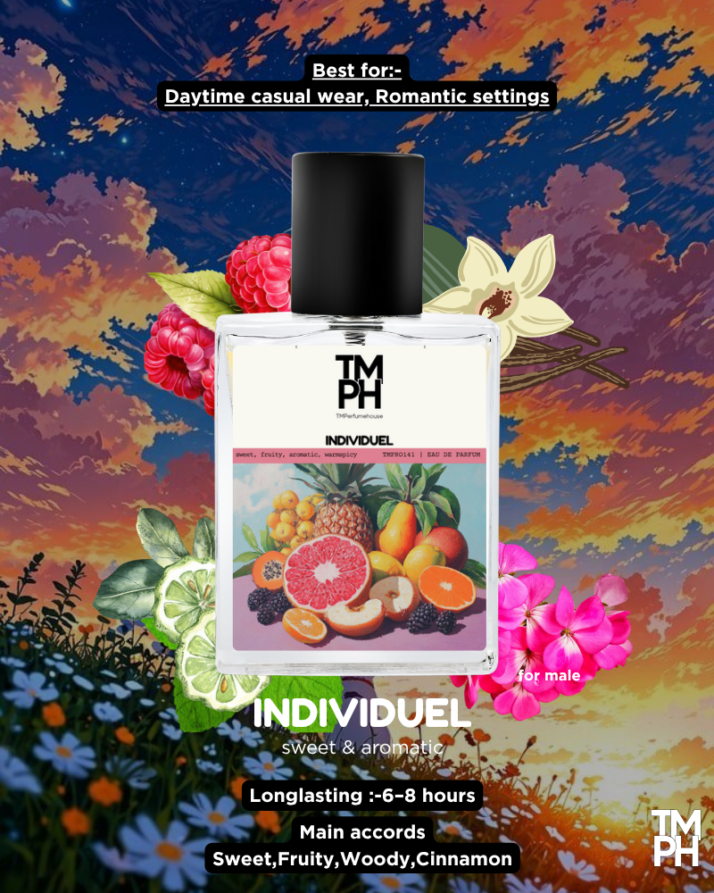 Individuel is a sophisticated scent crafted for the man who stands apart. It opens with notes of juniper, bergamot, and cinnamon, evolving into a heart of lavender, jasmine, and violet. The base of sandalwood, amber, vanilla, and musk creates a smooth, sensual finish, offering elegance, depth, and unmistakable character.