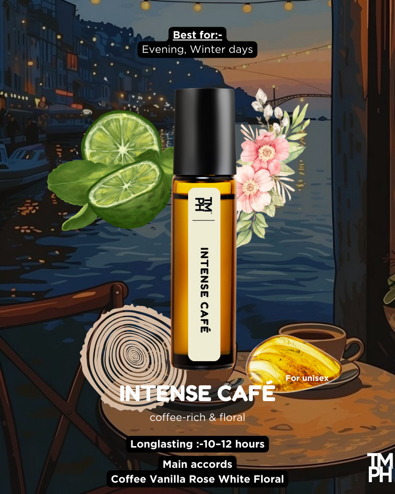 A rich, warm, and deliciously sweet unisex fragrance. Intense Café AT opens with a cozy blend of fresh coffee and soft floral notes, then melts into creamy vanilla and amber. It gives a comforting, sensual, and addictive vibe — perfect for people who love gourmand scents with depth and long-lasting performance.