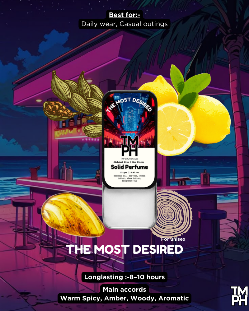 THE Most Desired Perfume for Men is crafted for those who enjoy bold, confident, and attention-grabbing fragrances. From the very first application, this solid perfume opens with fresh citrus and aromatic notes that feel energizing and refined. As the fragrance develops, it transitions into a spicy, warm heart that adds depth and character. Finally, the base settles into deep woody-musky notes, giving Most Wanted Solid Perfume for Men a masculine and long-lasting finish.