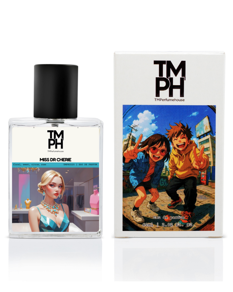 miss dr cherie is a lively scent that celebrates elegance with a fun twist. It opens with juicy strawberry, pineapple, and cherry, balanced by green mandarin. The heart of jasmine, violet, and rose adds floral delicacy, while the base of caramel, patchouli, and musk creates warmth, leaving a fragrance that is sweet, chic, and unforgettable.