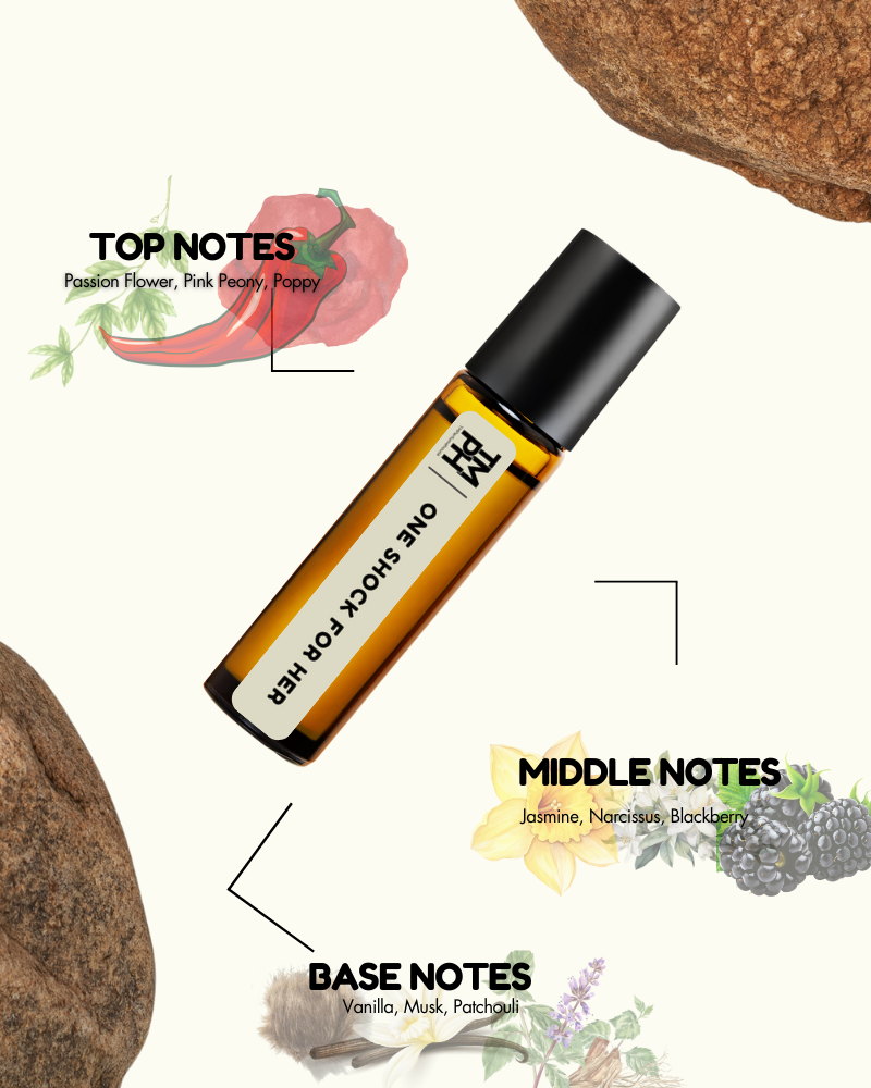 One Shock For Her AT is an addictive sweet-floral fragrance made for girls who love to stand out effortlessly. It opens with juicy peach, passionflower and poppy, creating a playful and energetic vibe. As it settles, the perfume turns seductive and feminine with a bouquet of jasmine, narcissus, peony and blackberry, adding depth and charm.