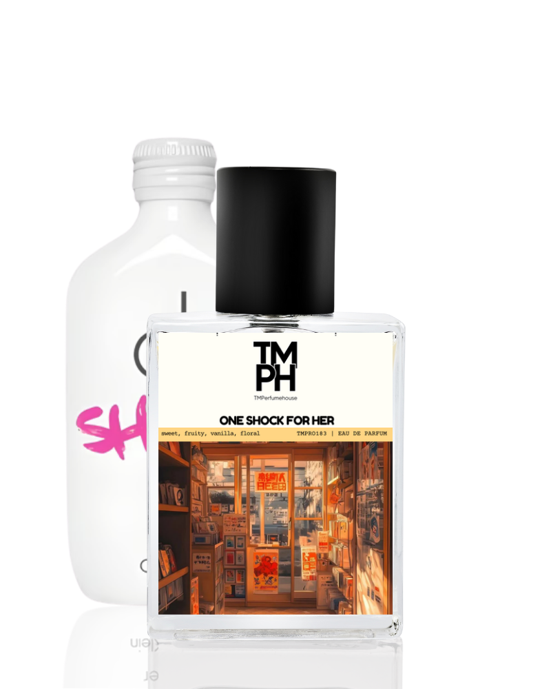 one shock for her is a vibrant, feminine scent with a rebellious twist. It opens with passionflower, poppy, and pink peony for a lively floral-fruity start. The heart reveals blackberry, jasmine, and dark chocolate for depth and sweetness. A warm base of vanilla, amber, patchouli, and musk lingers, creating a bold, irresistible trail.