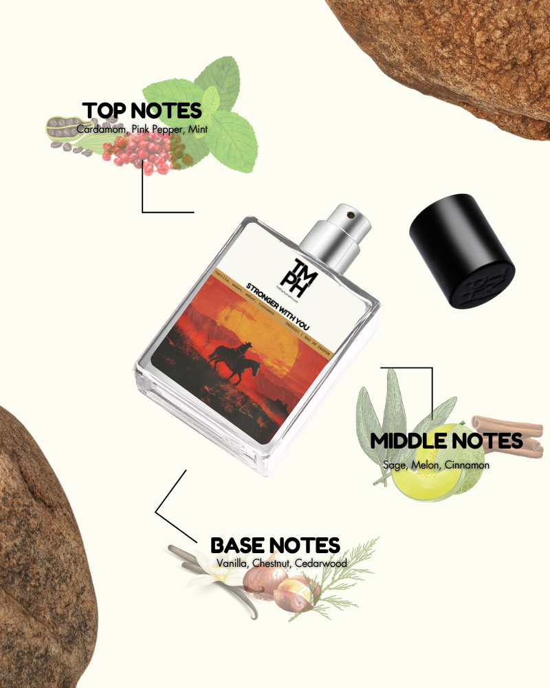 Stronger With You captivates with an irresistible mix of pink pepper and cardamom, layered over chestnut, vanilla, and rich woody notes. Intensely modern yet comforting, it embodies passion, strength, and lasting connection. Perfect for evening wear, Stronger With You leaves a sensual, magnetic trail that reflects confidence, love, and timeless masculinity.
