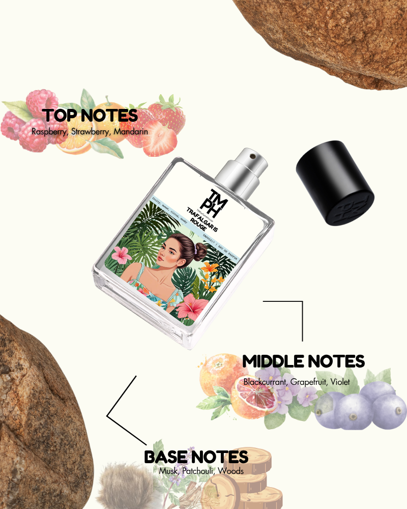 Trafalgar Isrouge is a radiant and uplifting fragrance that celebrates elegance with a playful twist. It opens with a burst of juicy red berries and citrus, blending into soft floral notes that evoke charm and confidence. The dry-down reveals a smooth, musky warmth that lingers beautifully on the skin. Perfect for daytime wear and special occasions, it captures the essence of joy, sophistication, and effortless style.
