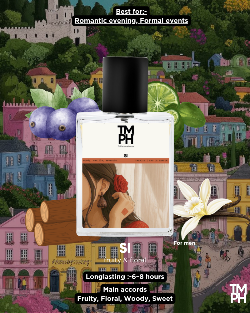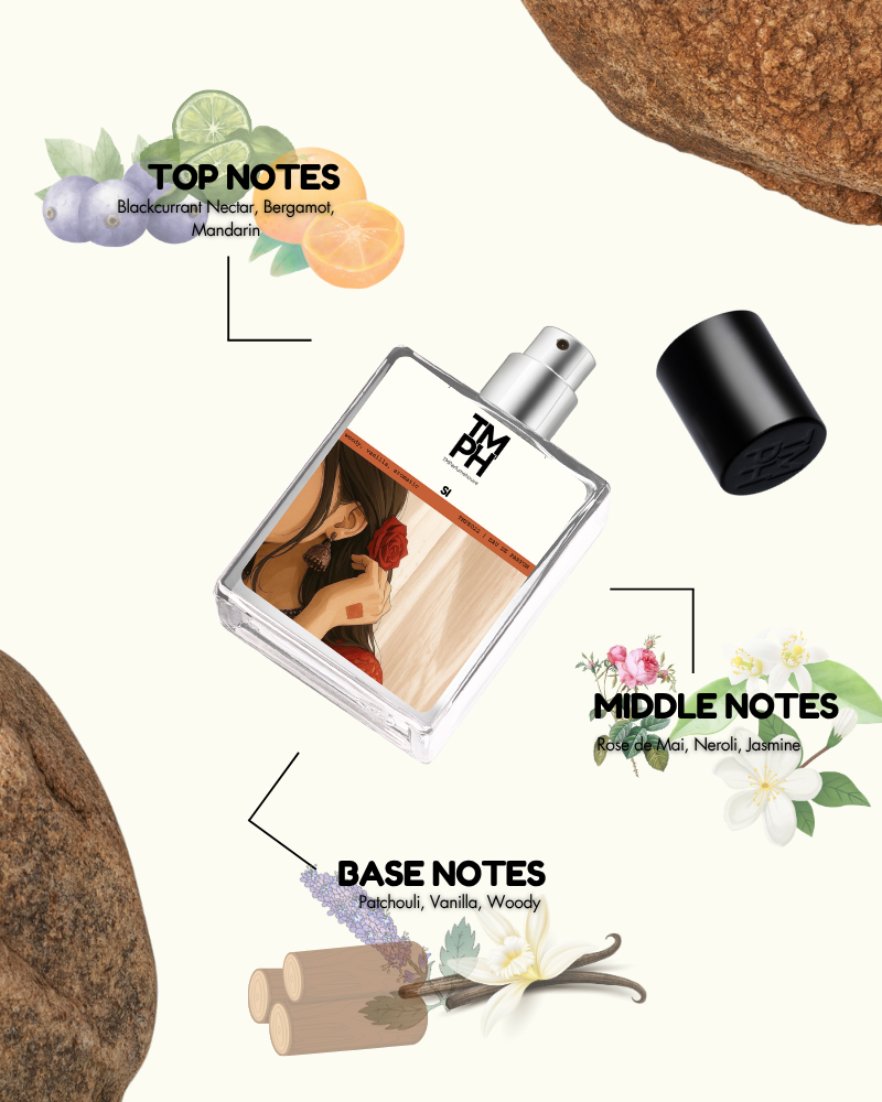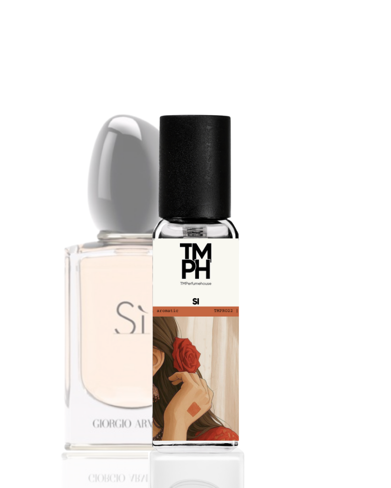 Si opens with luminous blackcurrant nectar, unfolding into a heart of rose and freesia. The base reveals warm vanilla, patchouli, and soft woods, creating a fragrance that is both powerful and delicate. Feminine yet bold, it celebrates confidence, passion, and timeless sophistication with a lingering trail that feels irresistibly captivating.