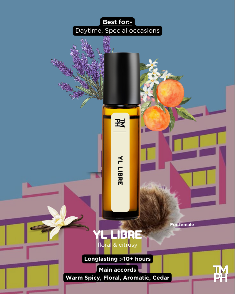 YL LIBRE AT by TMPerfumehouse is a bold, feminine, and ultra-modern fragrance created for women who love confidence in every spray. It opens with fresh Lavender, Mandarin, and Blackcurrant, followed by a sensual floral heart of Jasmine and Orange Blossom. The base finishes with warm Vanilla, Ambergris, and Musk, giving a rich, long-lasting trail.